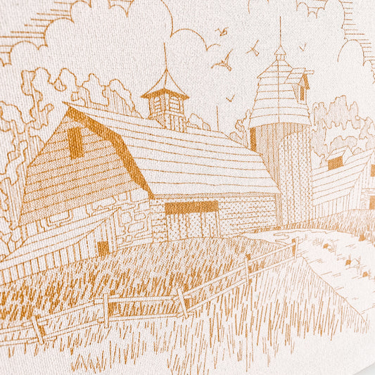 Sunset Designs “Country Barn” 1977 Framed Crewel Pattern