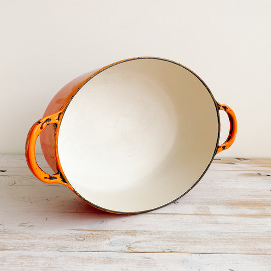 Vintage Oval Le Creuset Flame Orange Enameled Cast Iron Dutch Oven