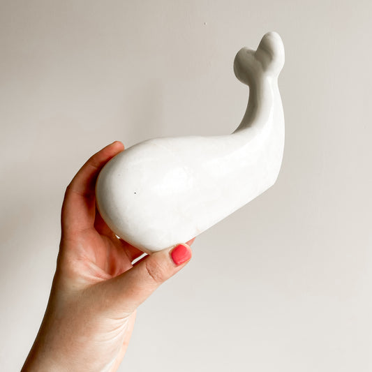 Carved White Marble Whale (8")