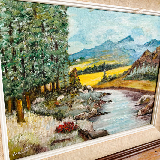 Framed Oil Painting - Winter Scene with Trees & Mountain
