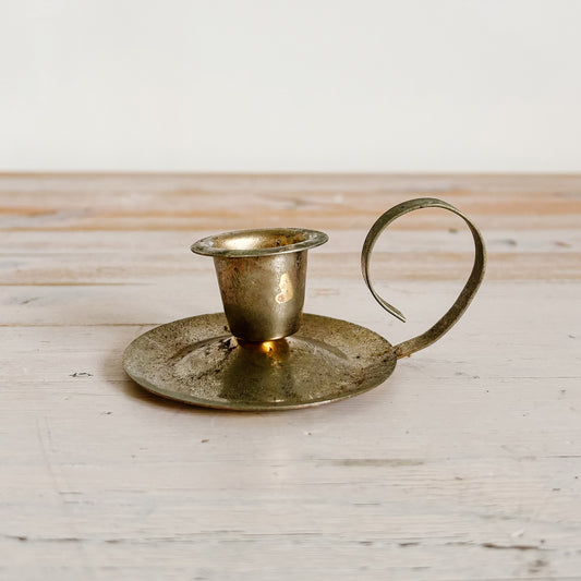 Brass Candle Stick Holder with Mother of Pearl Inlay