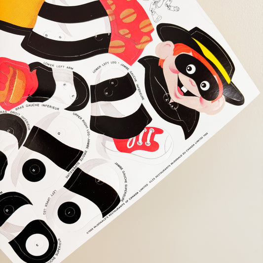 McDonald's Birthday Party Favor - Ronald McDonald McPuppets Paper Toy - 1988