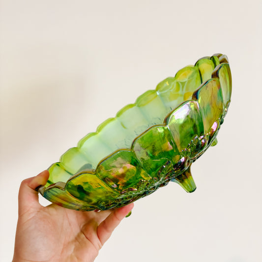 Vintage Iridescent Green Oval Carnival Indiana Glass Fruit Bowl