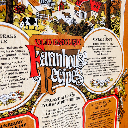 Vintage Cotton Tea Towel - Old English Farmhouse Recipes