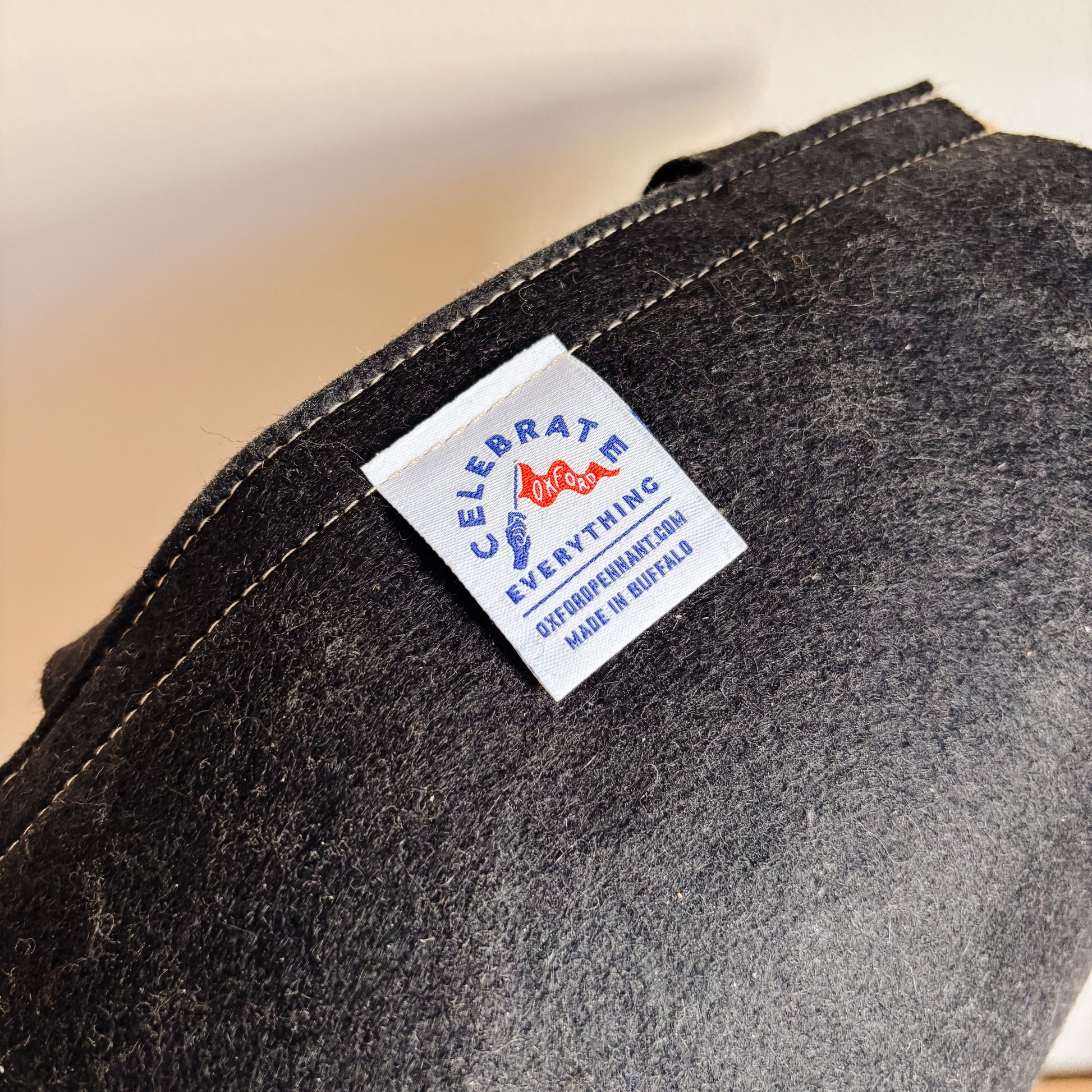 Navy wool felt pennant featuring the American Football House from the cover of their 1999 debut album. This collab with Oxford Pennant is sold out online. Brand-new condition.