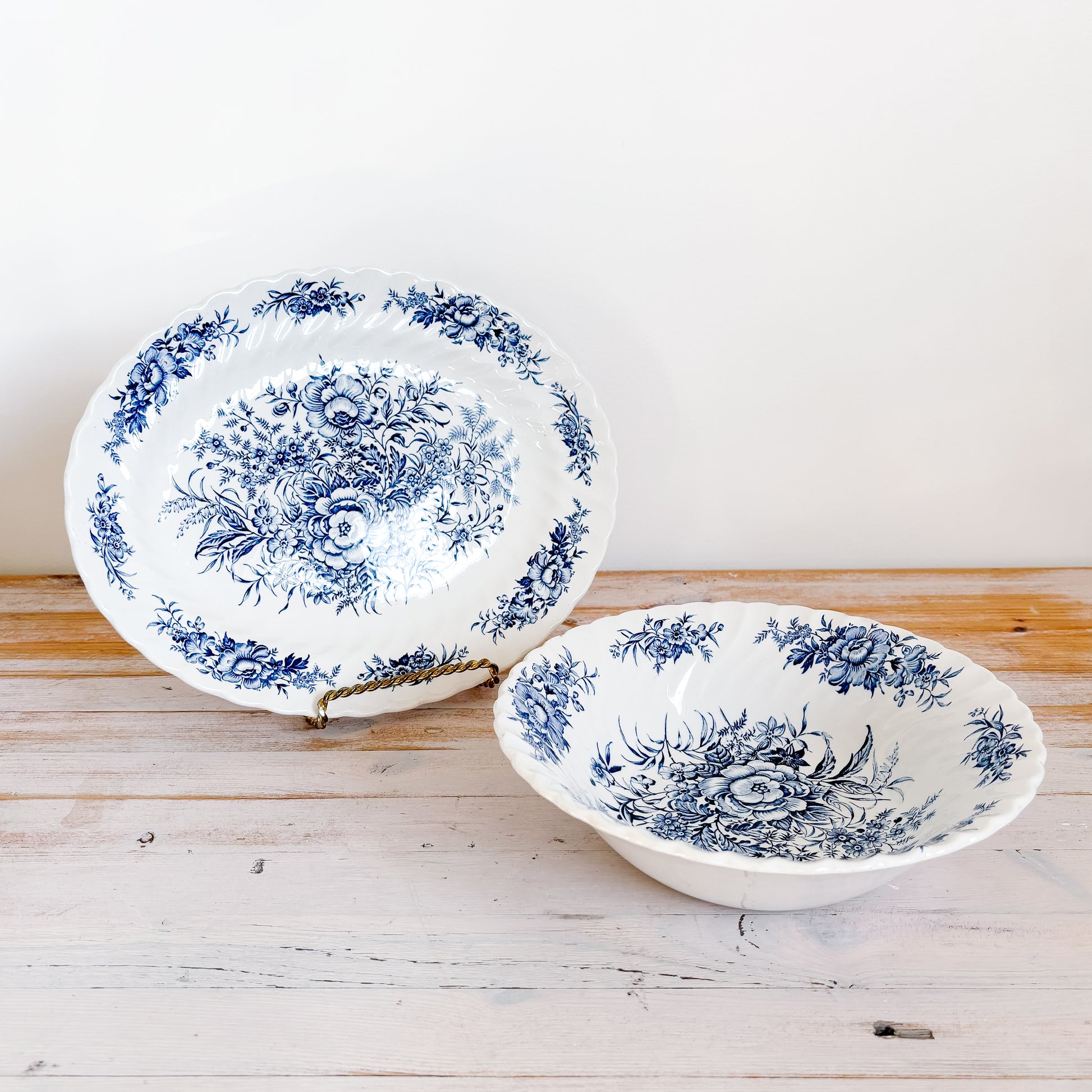 Beacon Hill by British Anchor England Blue Floral Serving Plate and Bowl