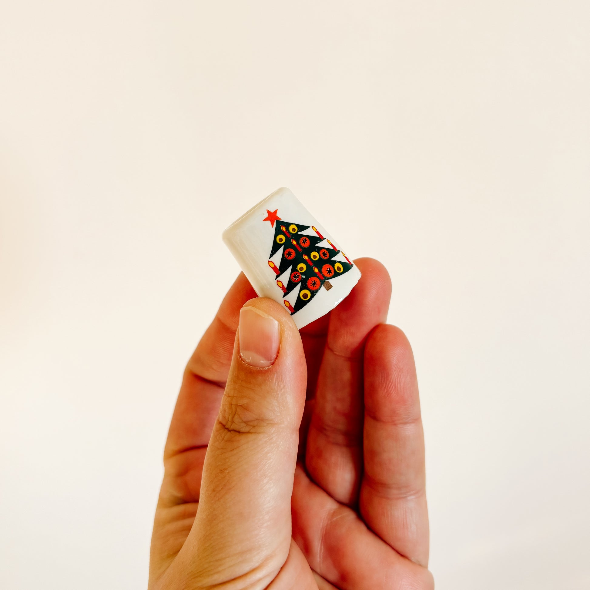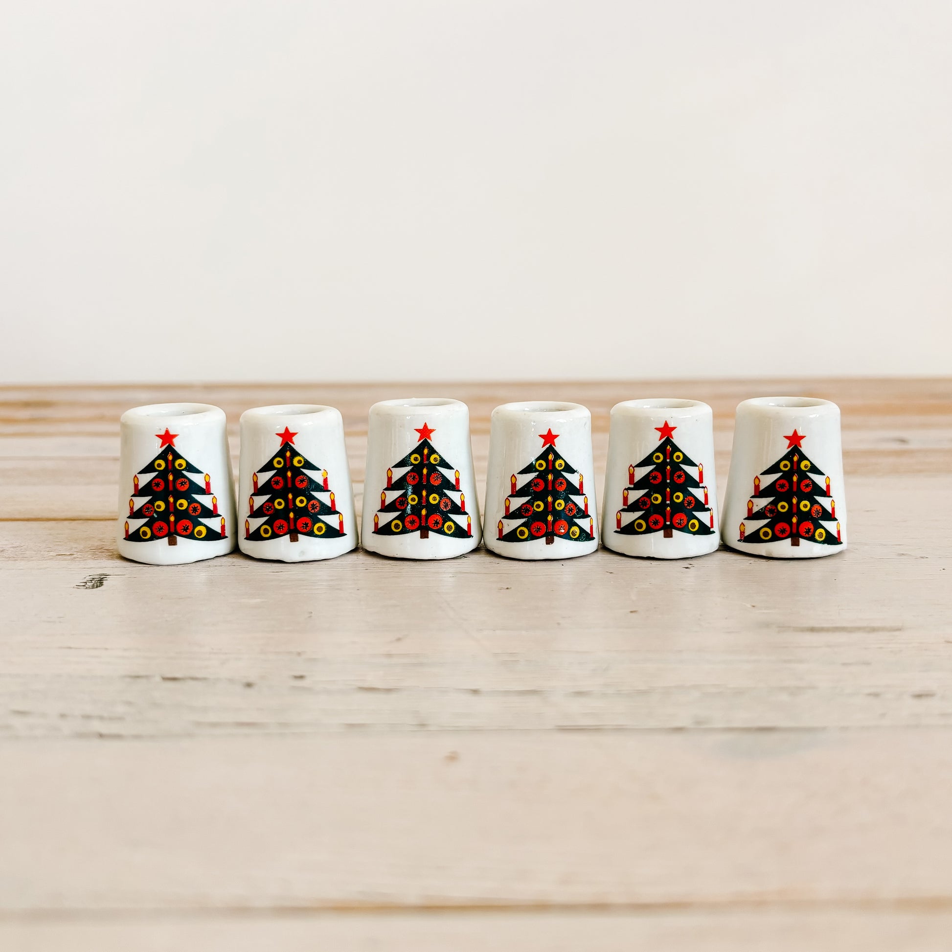 Ceramic Mini Taper Candle Holders with Christmas Tree Design (set of 6)