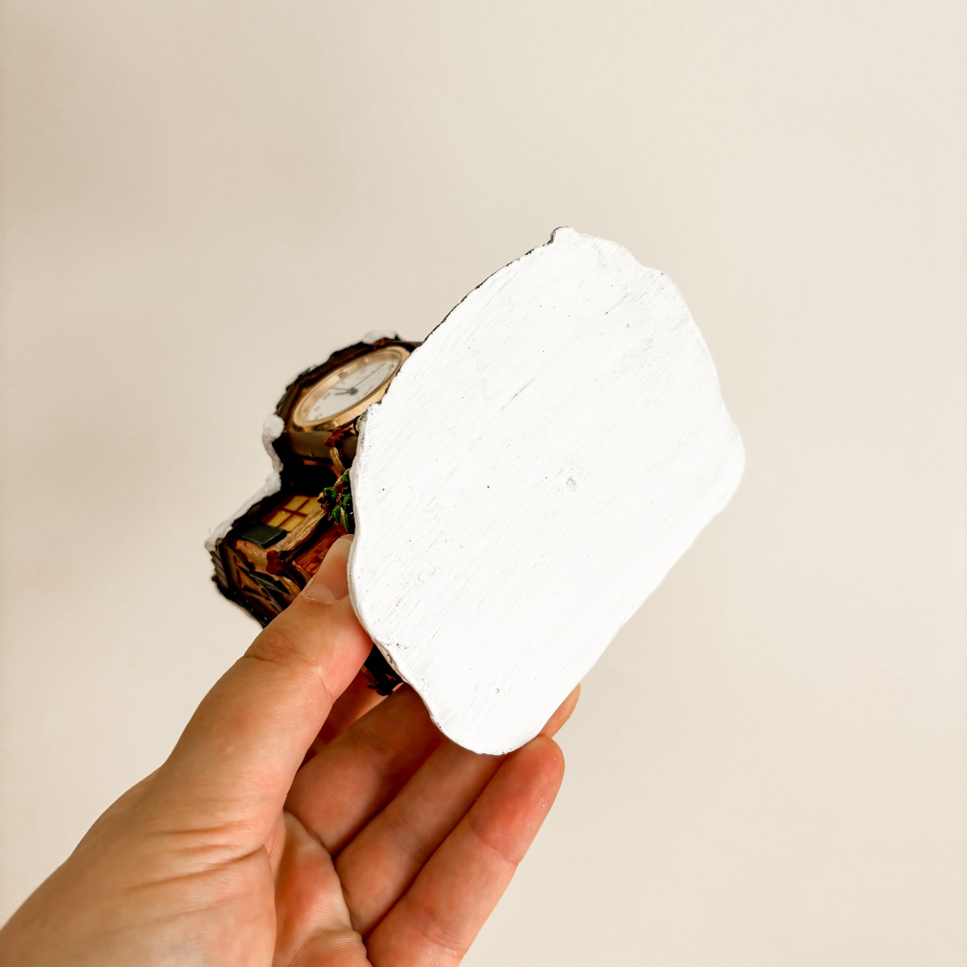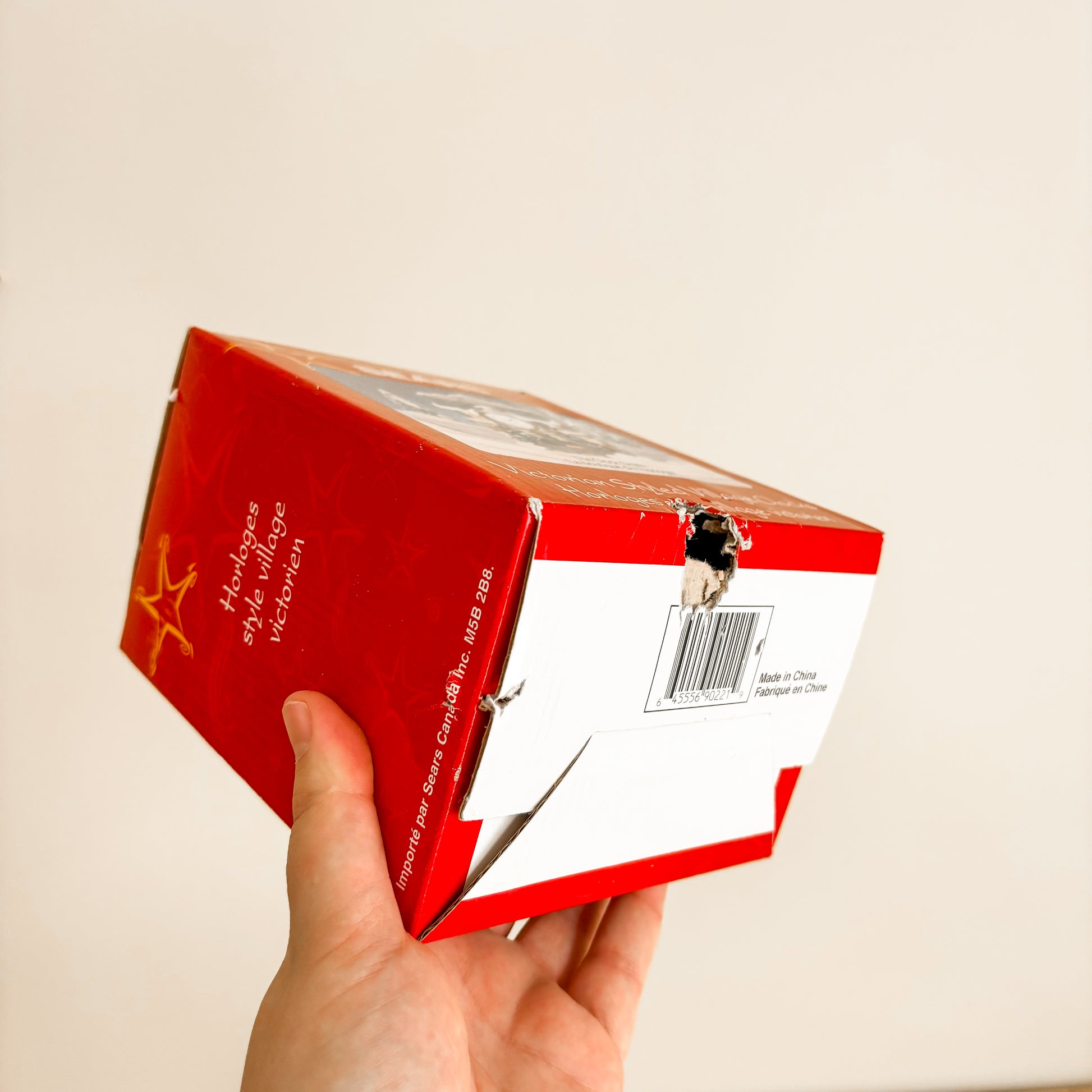 Condition Notes: House in excellent condition, box has a hole (chewed by a cat lol), see photos. Clock is not functional.