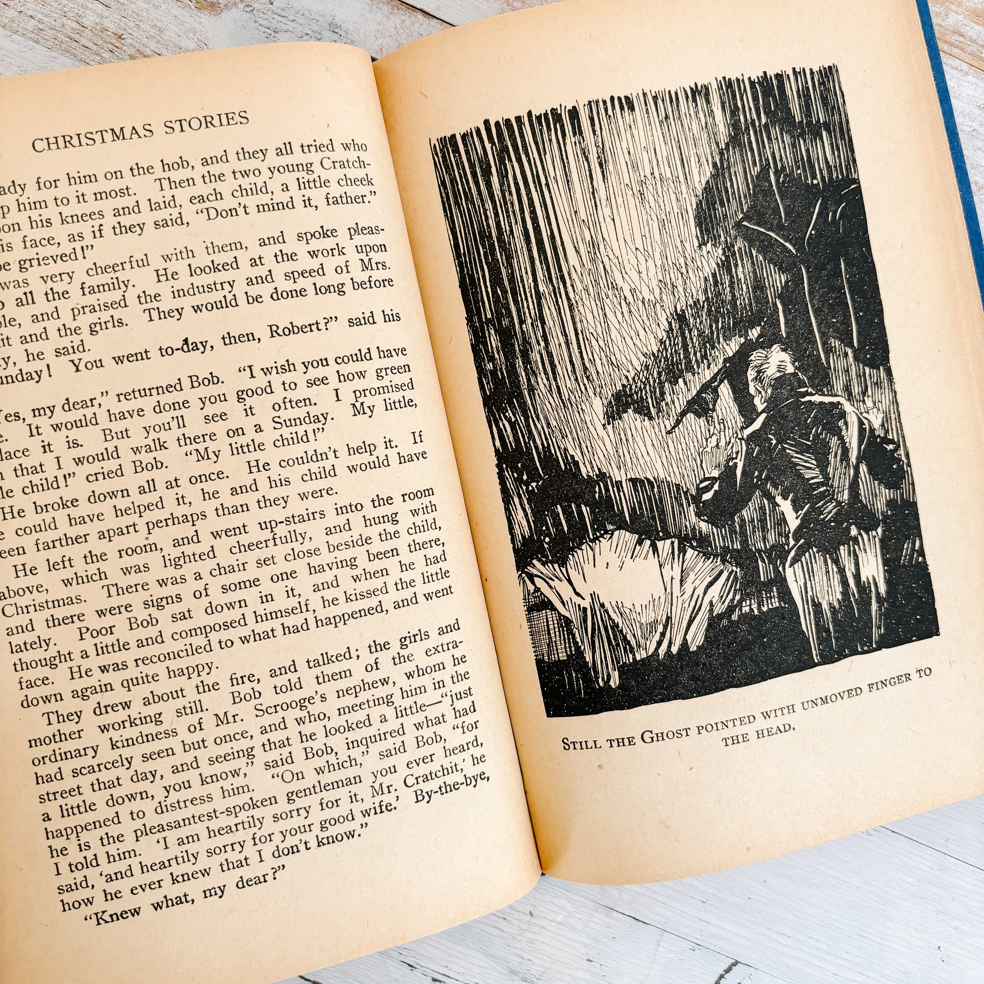 Small vintage copy of Dickens' Christmas Stories with the dust jacket included. No date but believed to have been published in the 1940s.