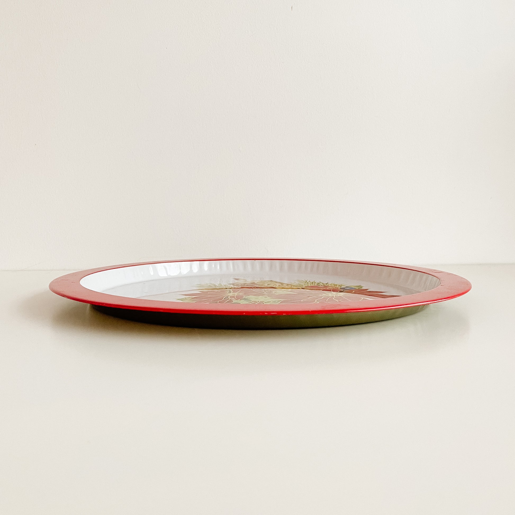 Festive Tin Tray - Holiday Candle and Poinsettia
