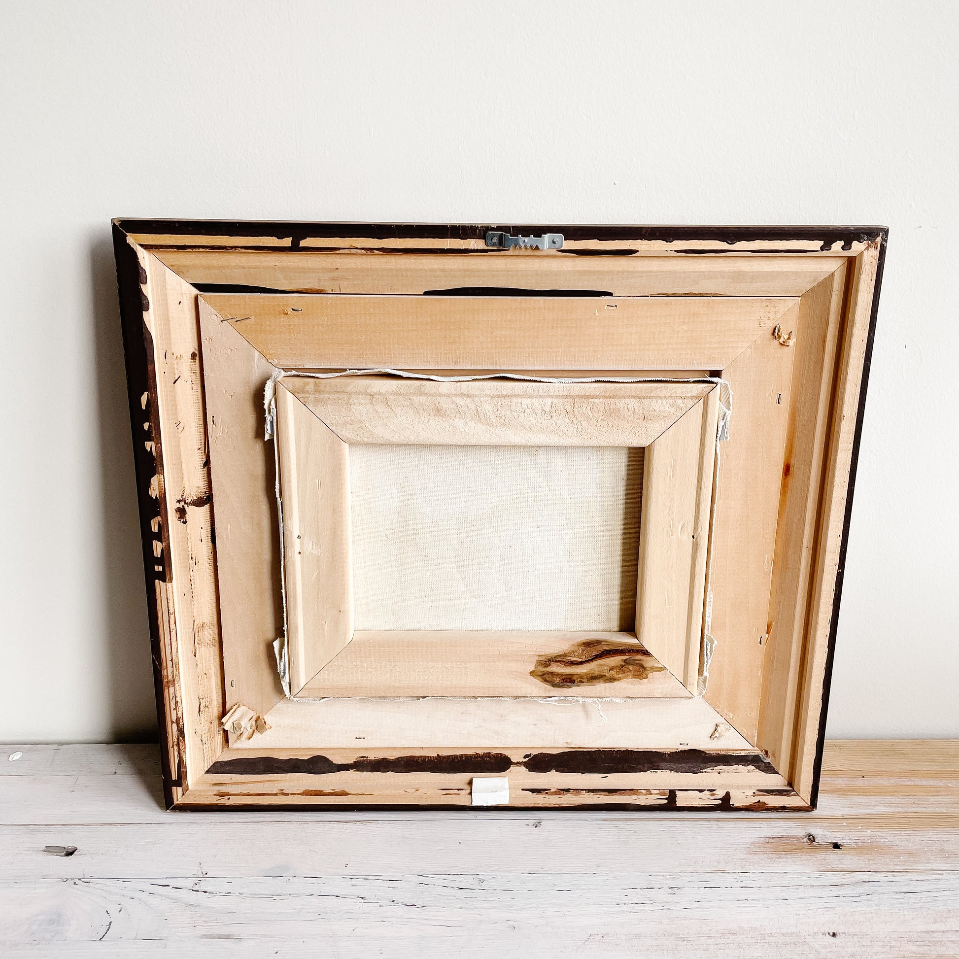 Hook on back to hang. Canvas can be removed from frame if desired.
