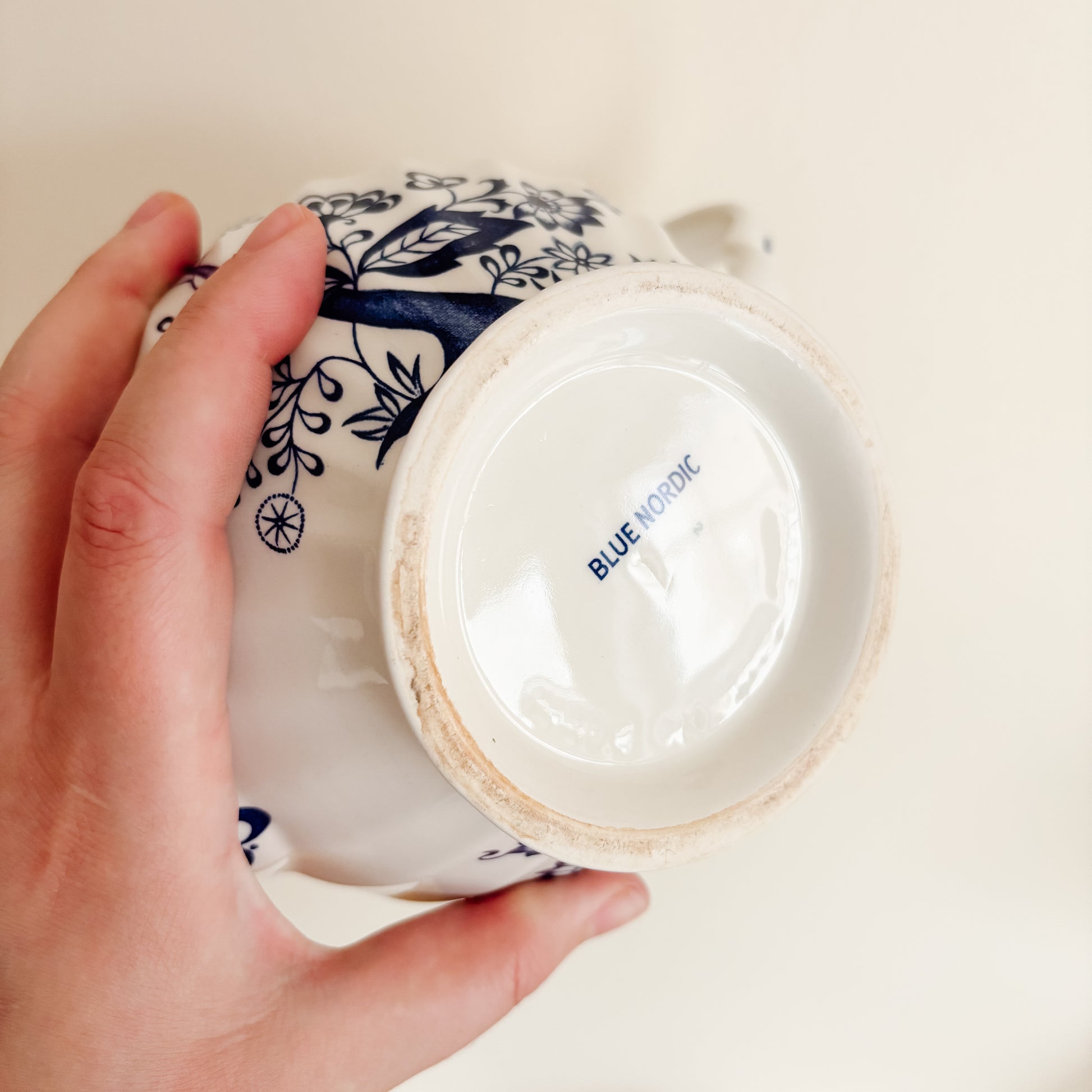 Vintage J. & G. Meakin Blue Nordic tea set. Includes teapot, 4x tea cups, and 4x saucers. Manufactured in Staffordshire, England in the 1960s. All pieces stamped on the bottom. Also sometimes called Blue Onion. Such a pretty pattern!