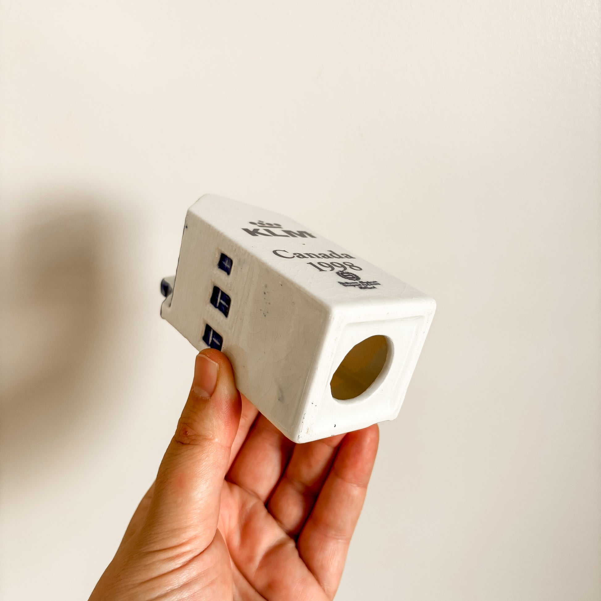 KLM Delft Blue Amsterdam Canal House made by Elesva Holland. Not part of the numbered set of houses. The back is stamped "Canada 1998." Hollow with hole on the underside, see all photos.