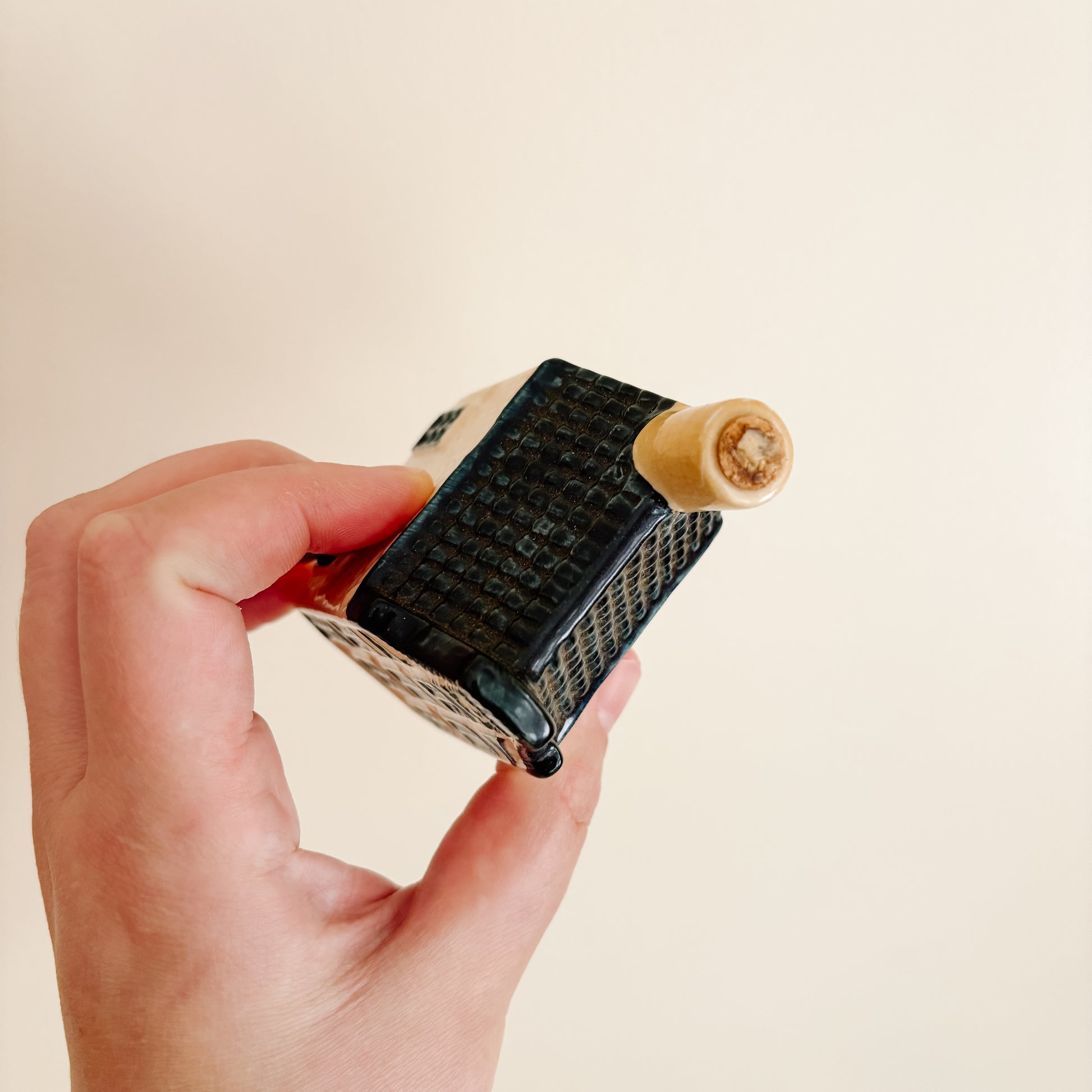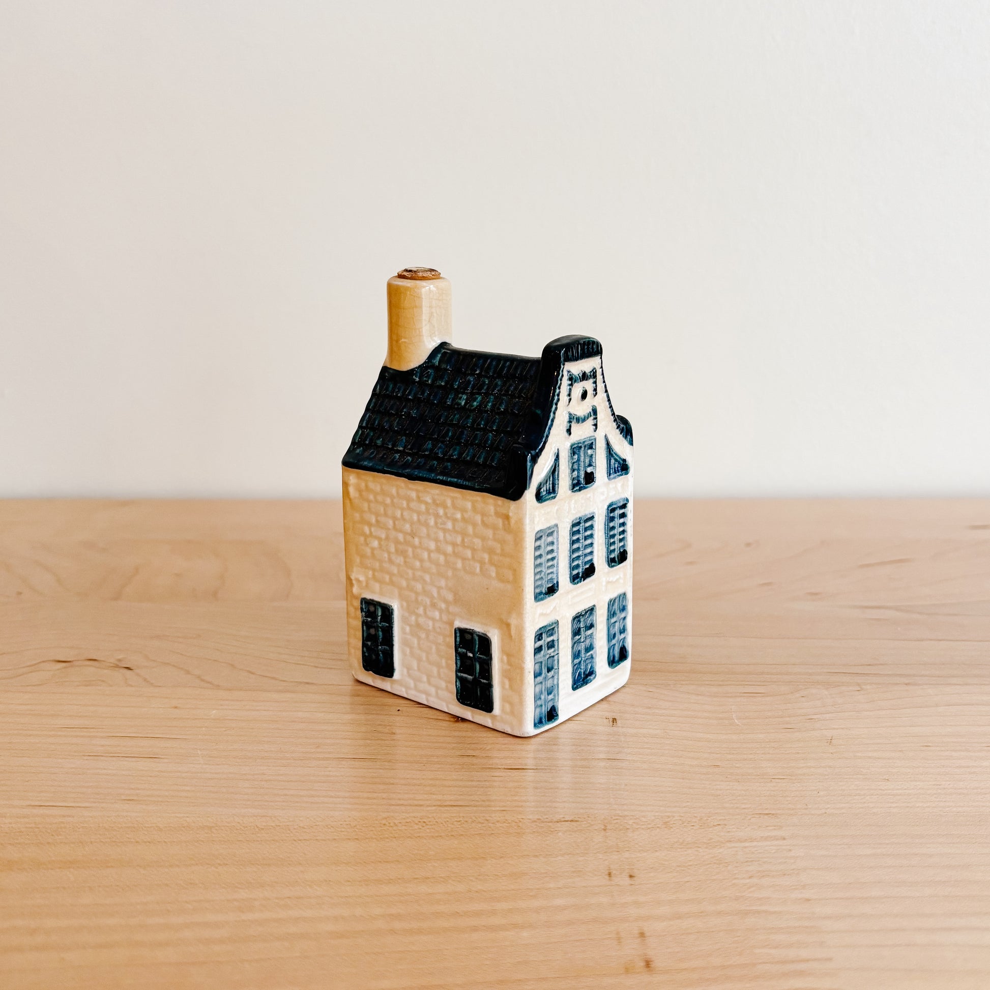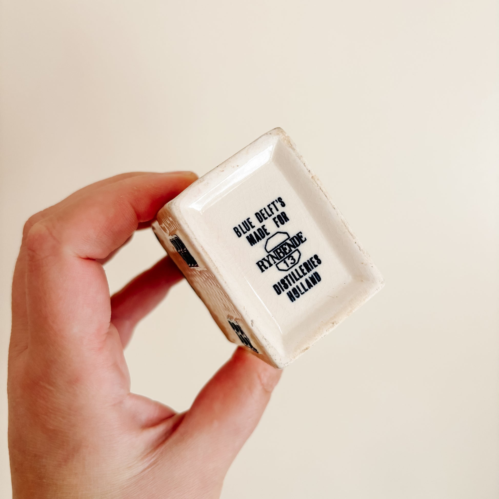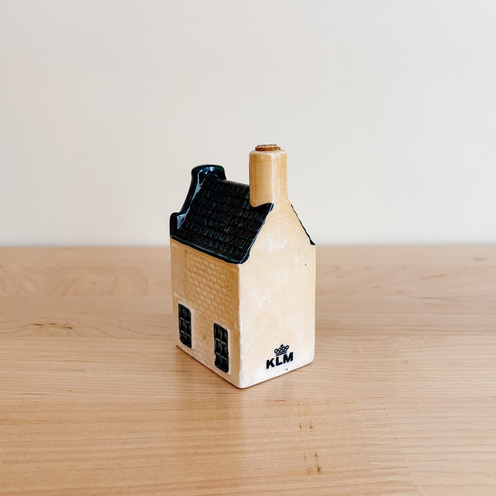 KLM Delft Blue Dutch ceramic house number 13. Stamped for Rynbende Cherry Brandy Distilleries Holland. Cork seal in place, bottle is empty.