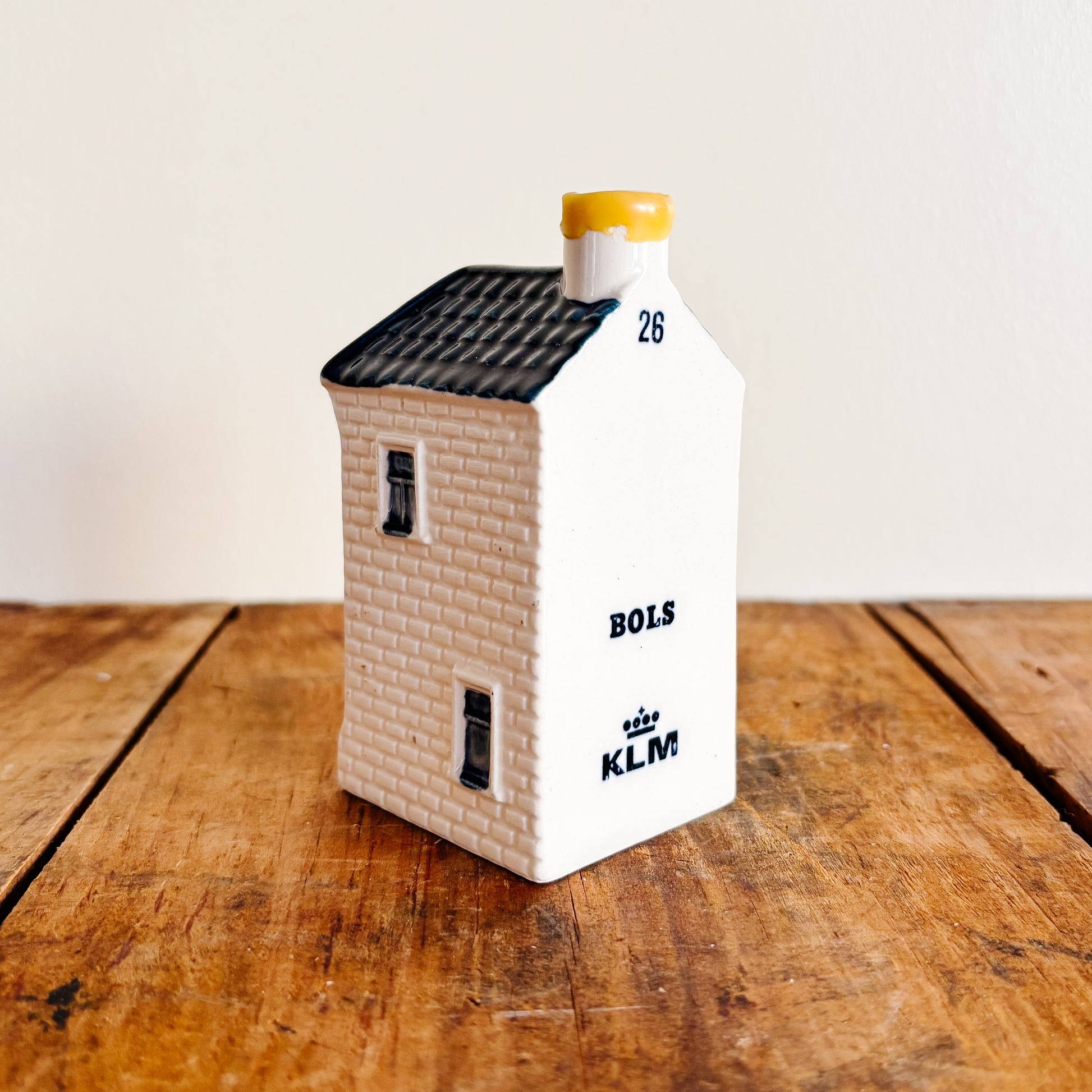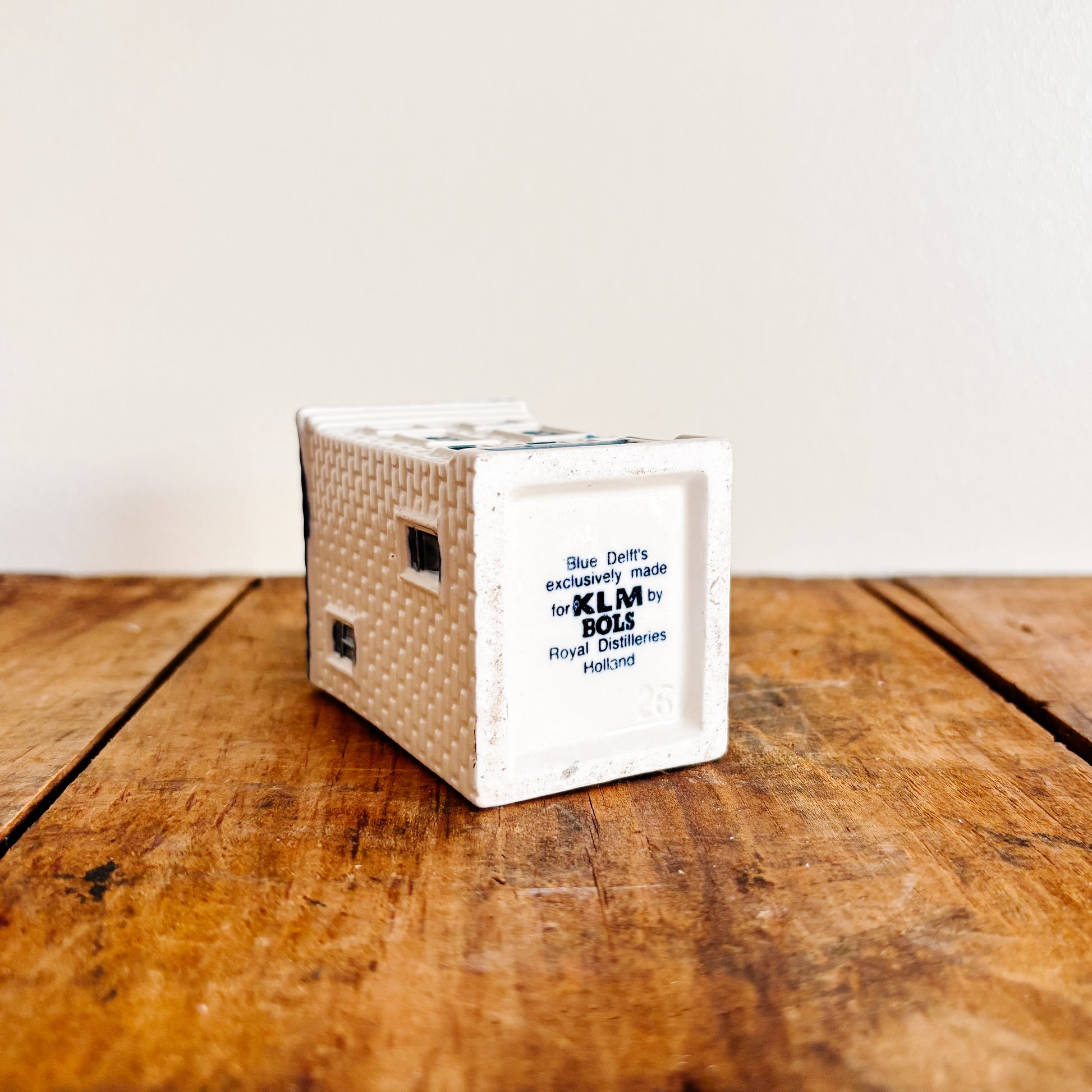 KLM Delft Blue Dutch ceramic house number 26. Bols gin stamp, unsealed/empty.