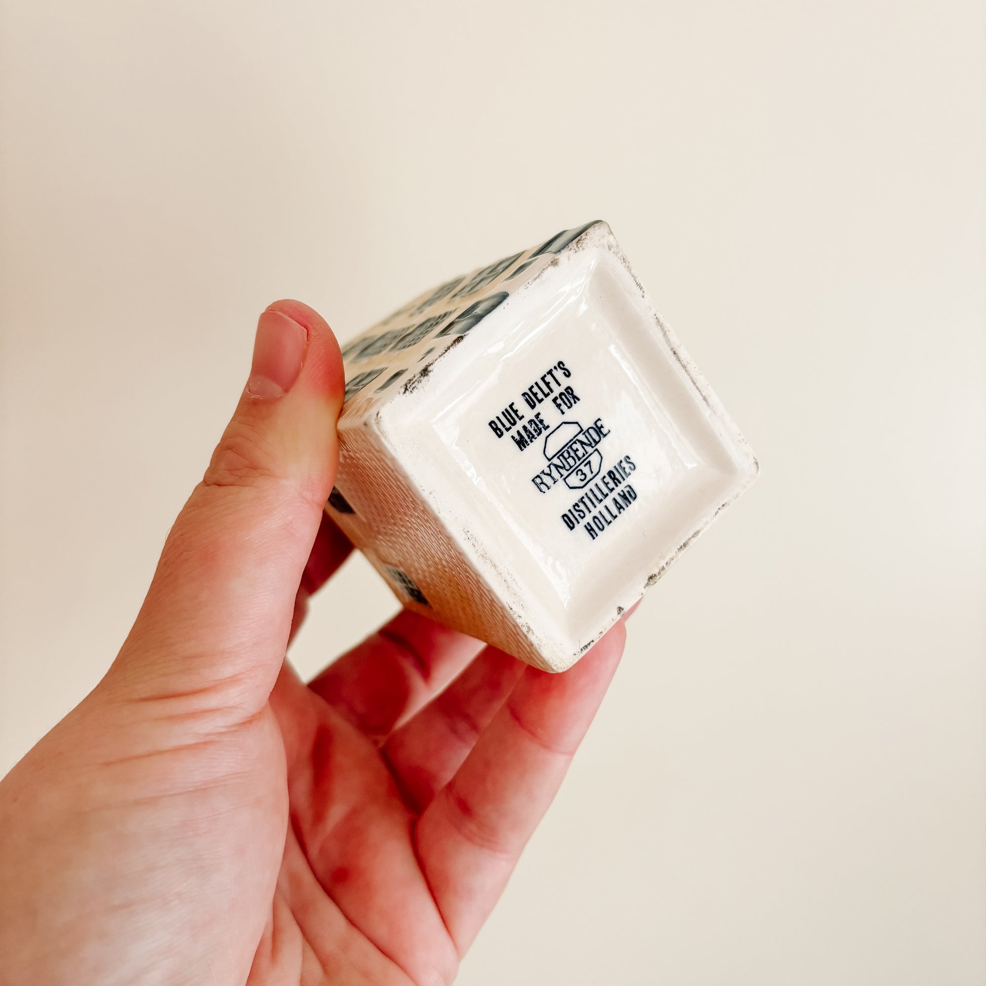 KLM Delft Blue Dutch ceramic house number 37. Stamped for Rynbende Cherry Brandy Distilleries Holland. Cork seal in place, bottle is empty.