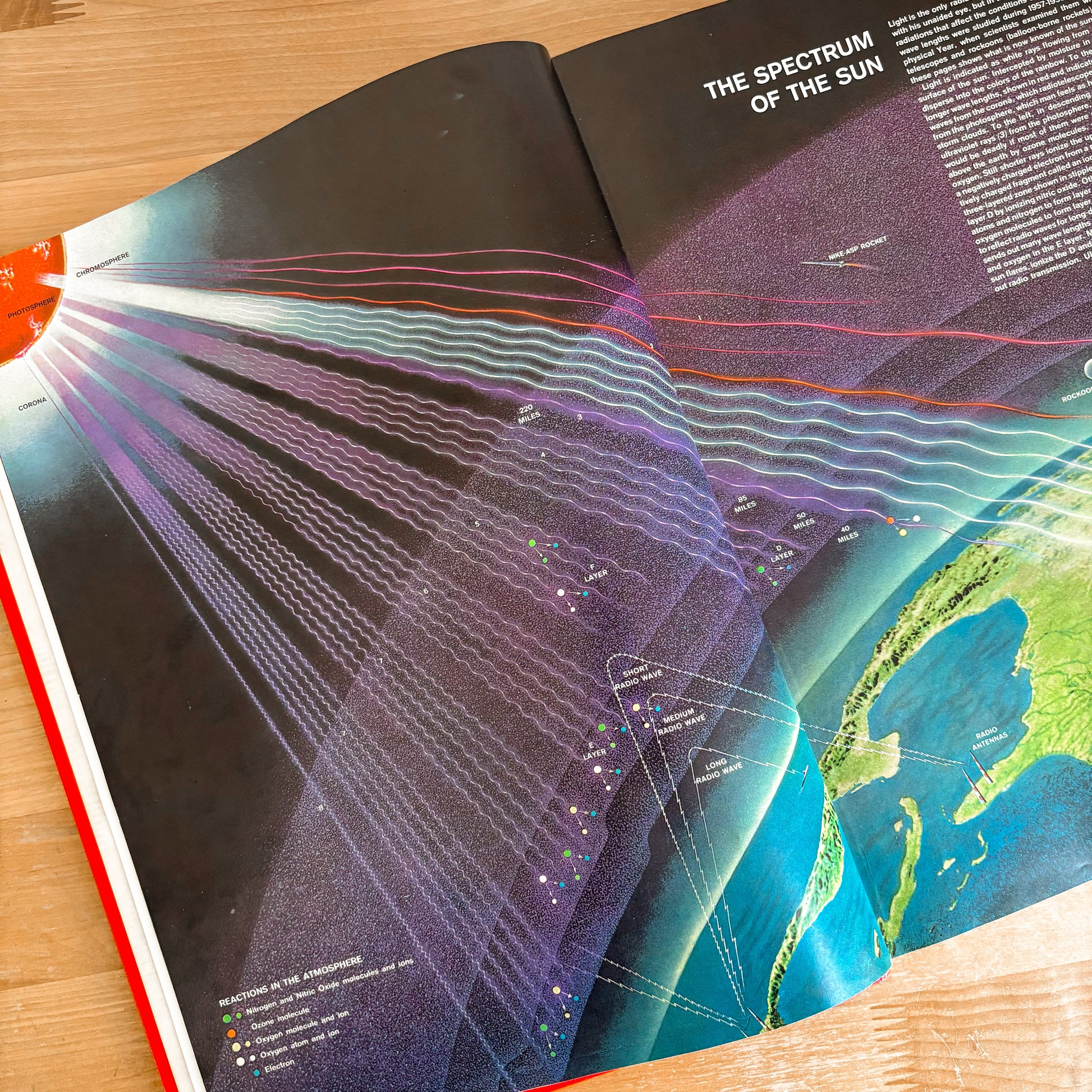 Beautiful vibrant red hardcover atlas published by Life and Rand McNally in 1961. Full of great illustrations, photos, and maps. Love this pop of red on a bookshelf or coffee table, fun to flip through with little ones.