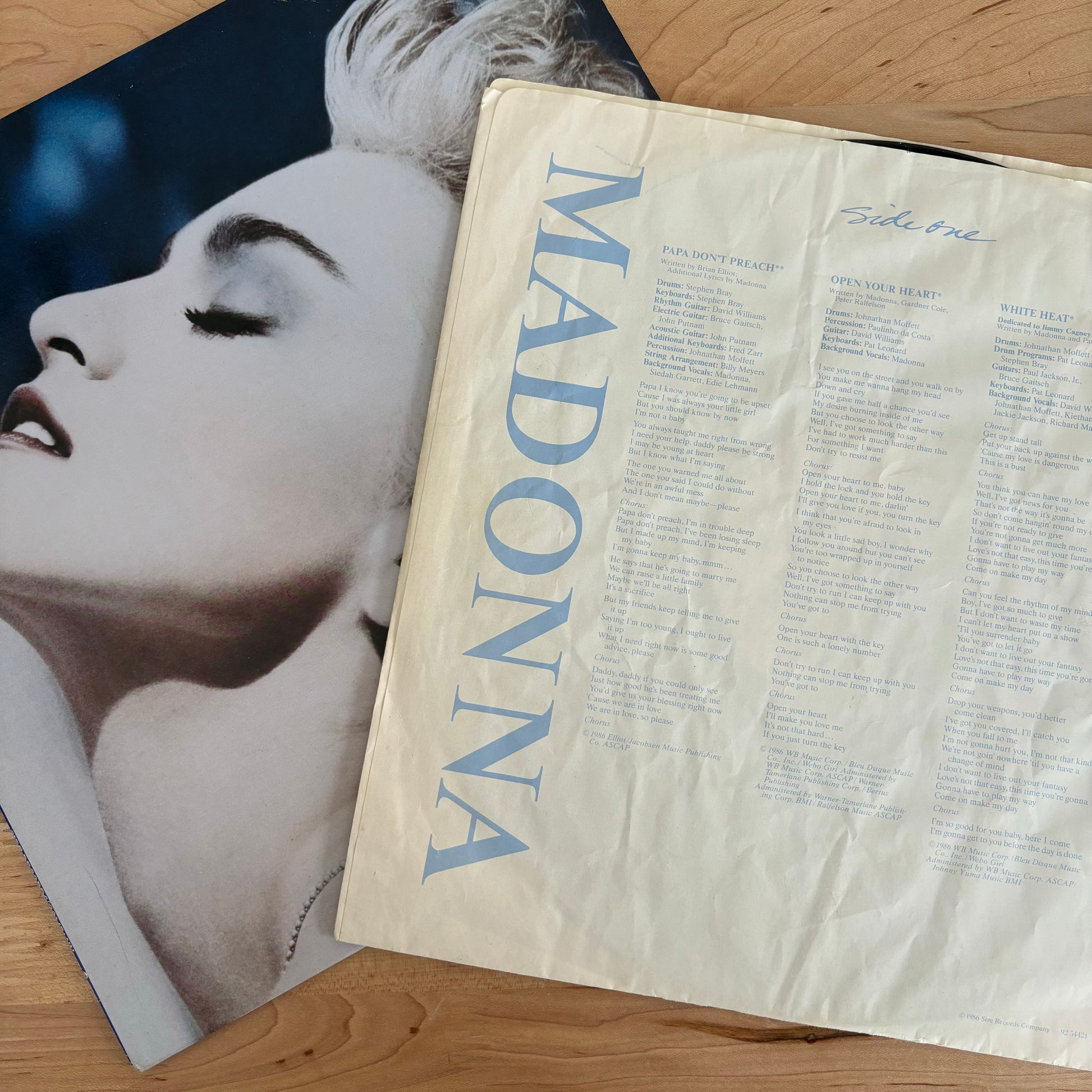 True Blue is the third studio album by Madonna, released on June 30, 1986 by Sire Records. True Blue is the best-selling album of 1986, the best-selling of the 1980s by a female artist, and one of the best-selling albums of all time. It features the classic Madonna track, "Papa Don't Preach."