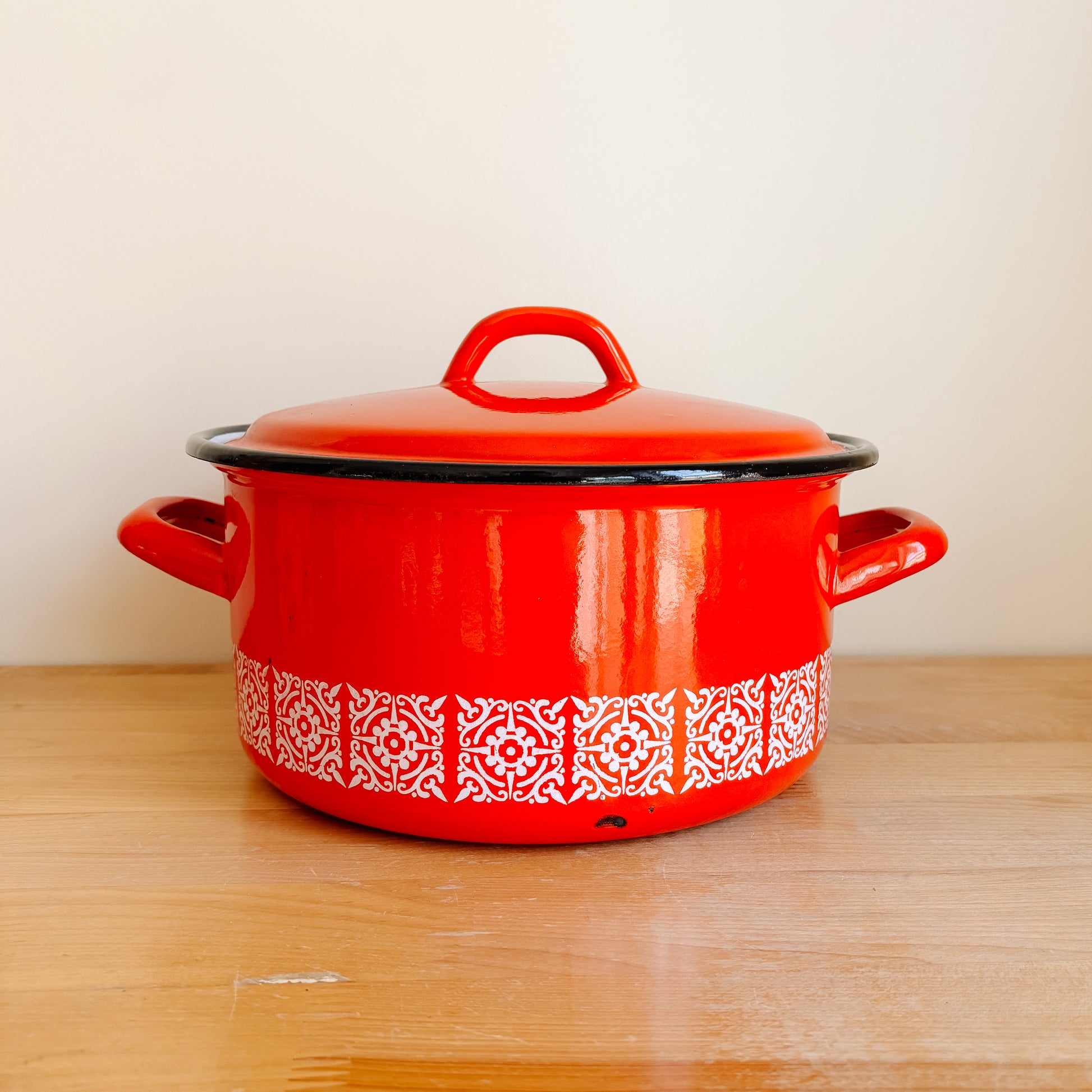 Midcentury Red Enamel 5 Quart Soup Pot with Lid