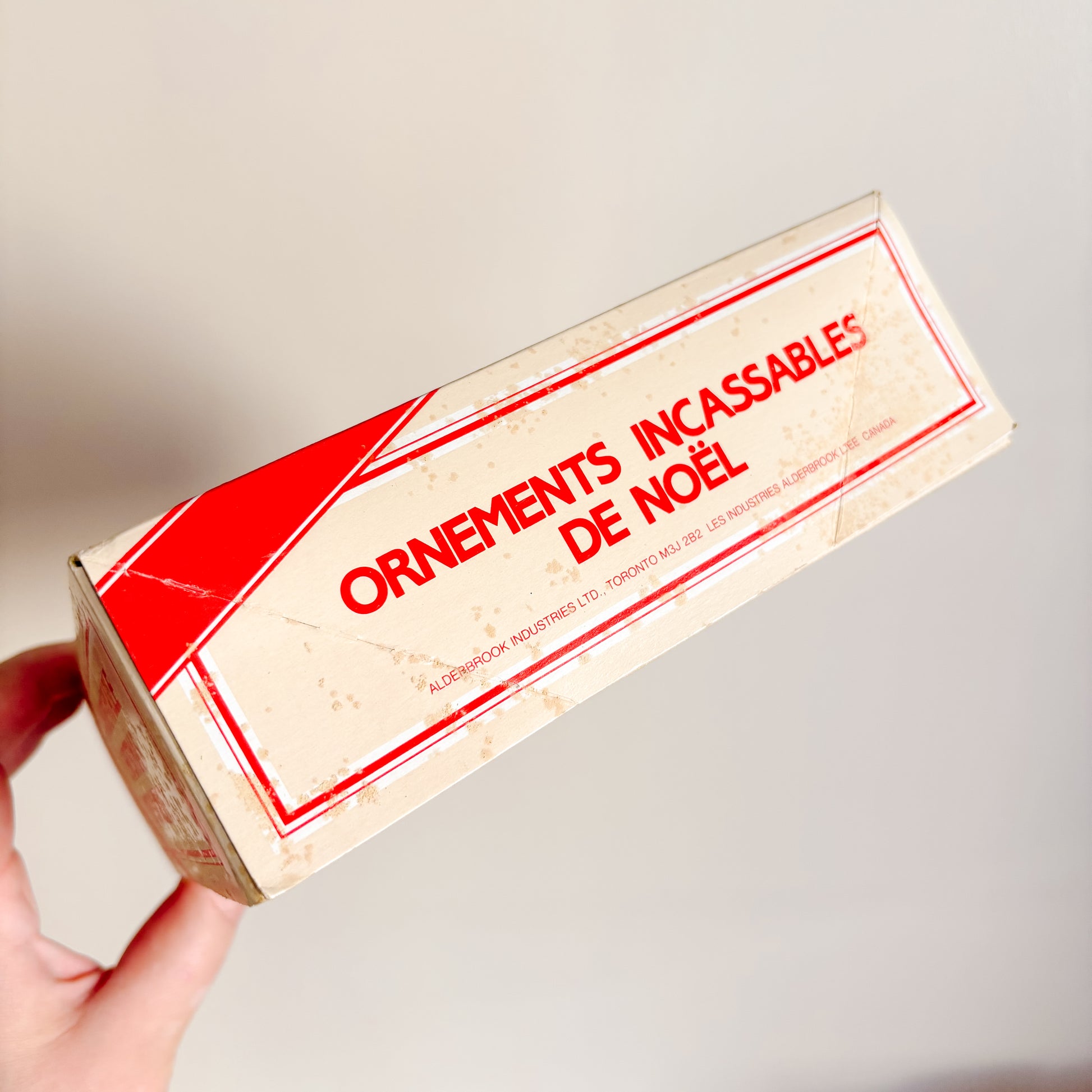 Set of 9 Alderbrook Canada satin thread ornaments. 3 shiny blue assorted varieties, in great condition. Includes original box!