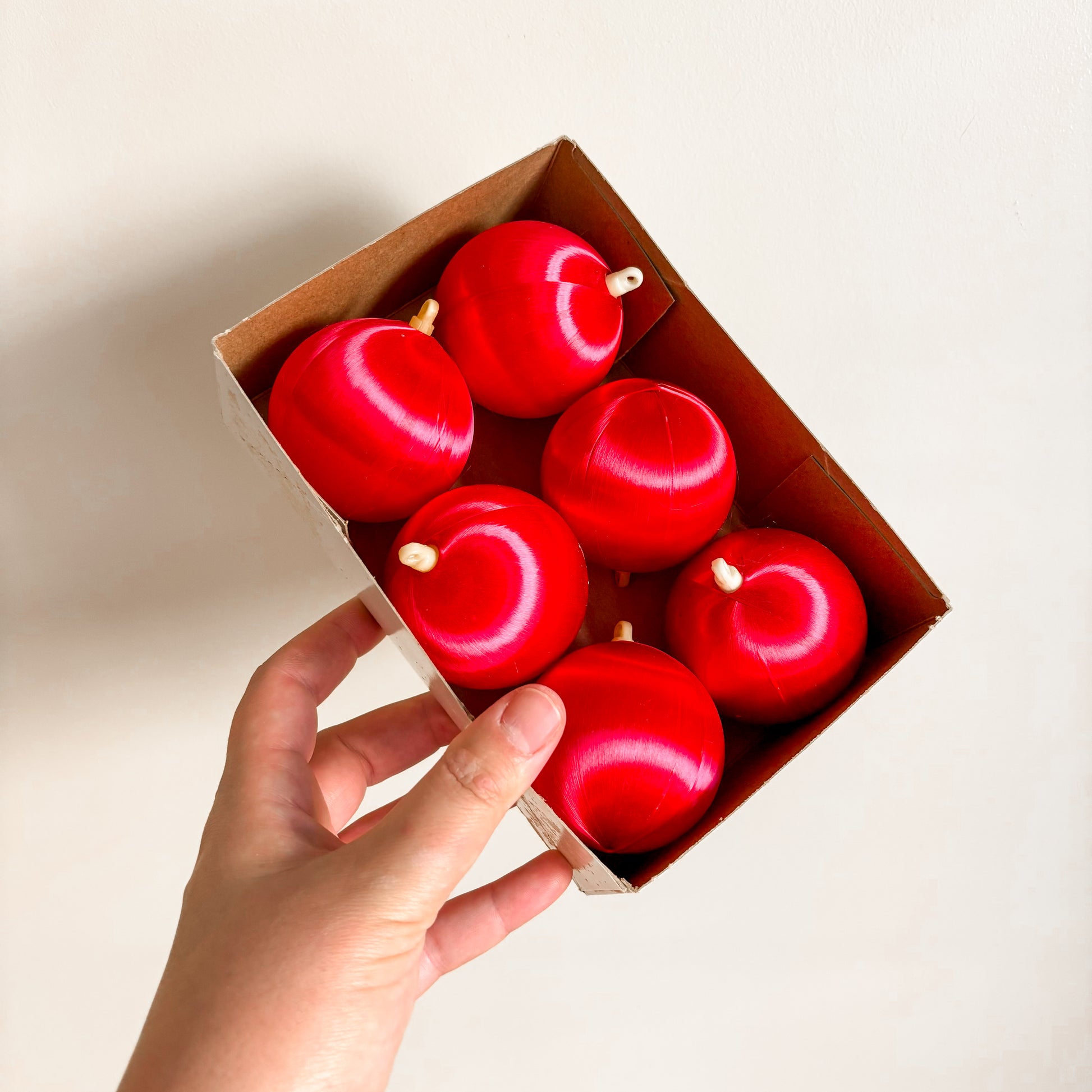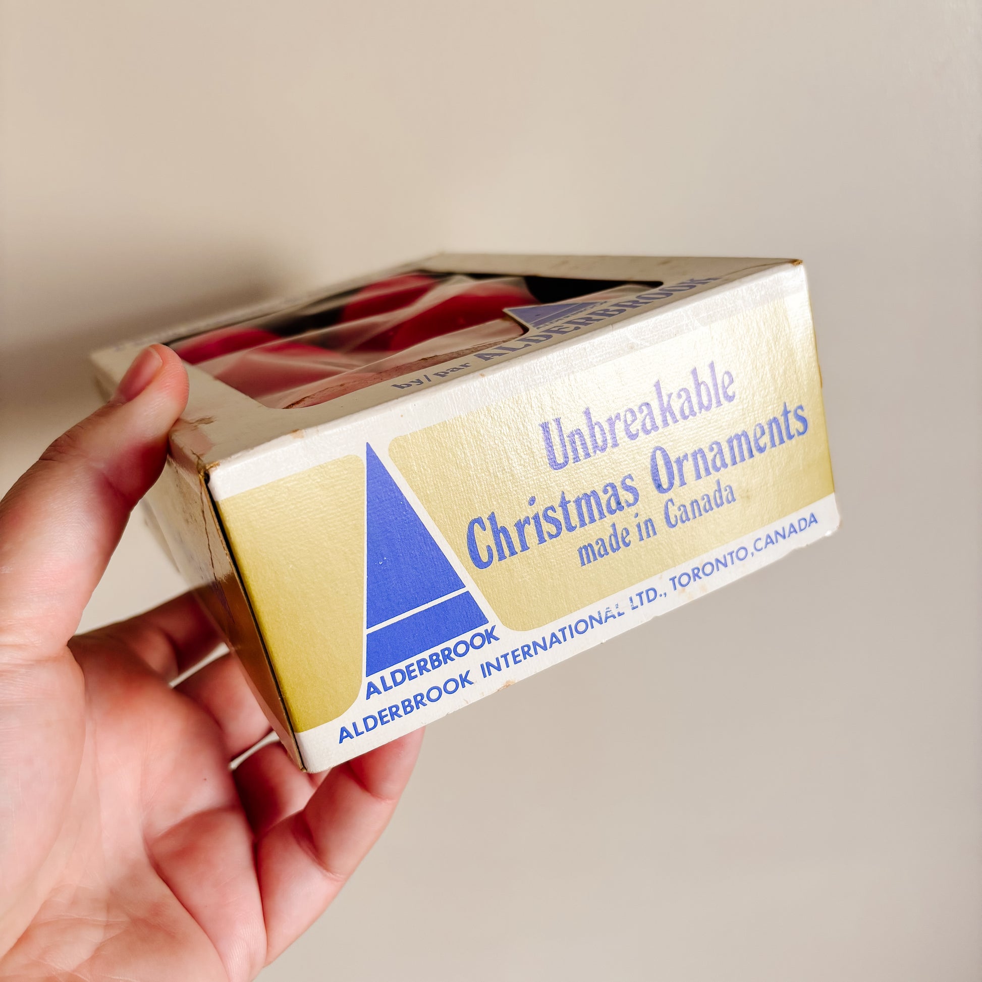 Set of 6 Alderbrook Canada satin thread ornaments. Shiny red, in great condition. Includes original box!