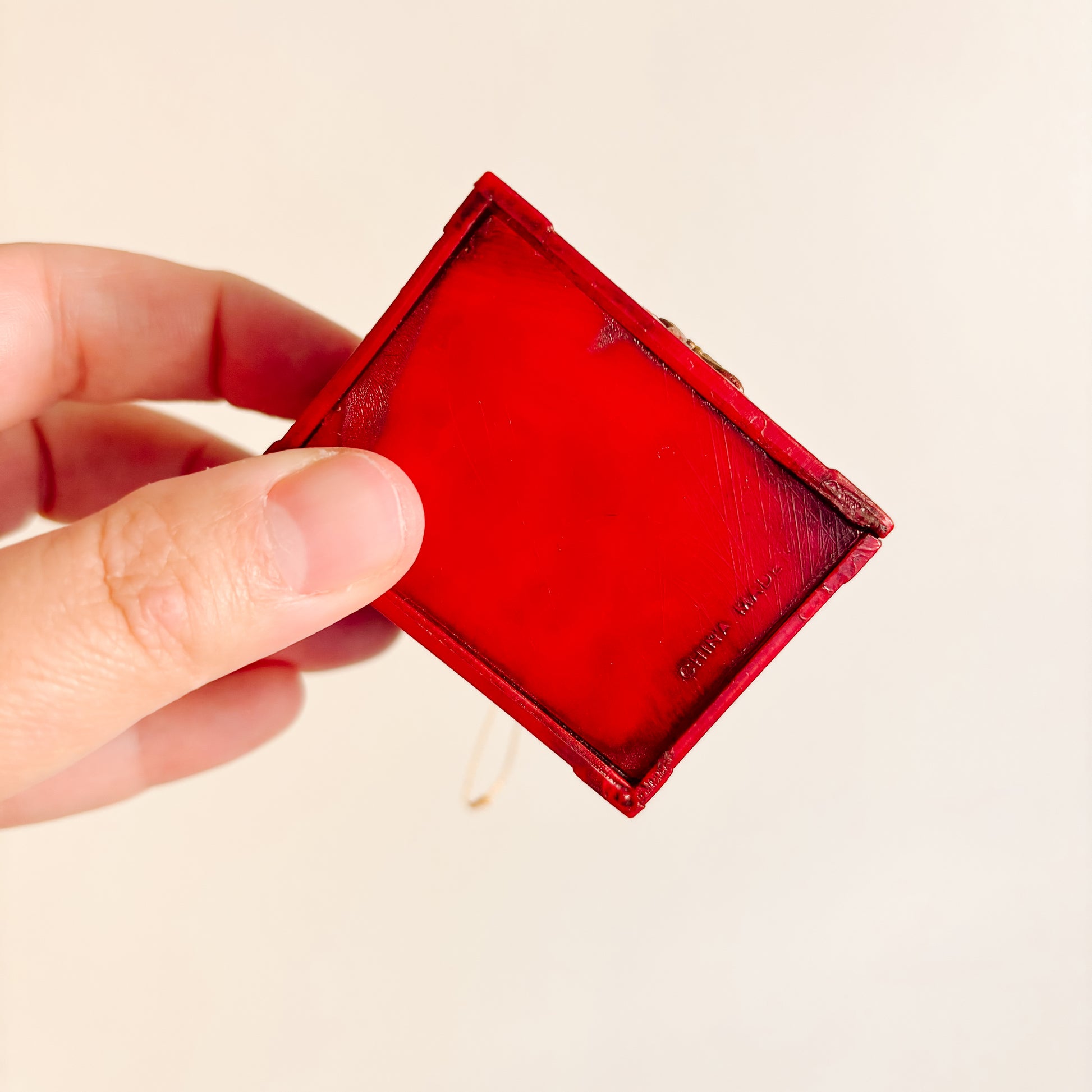 This Christmas tree ornament features a toy box overflowing with Christmas toys. Mirrored back catches the light when on the tree.