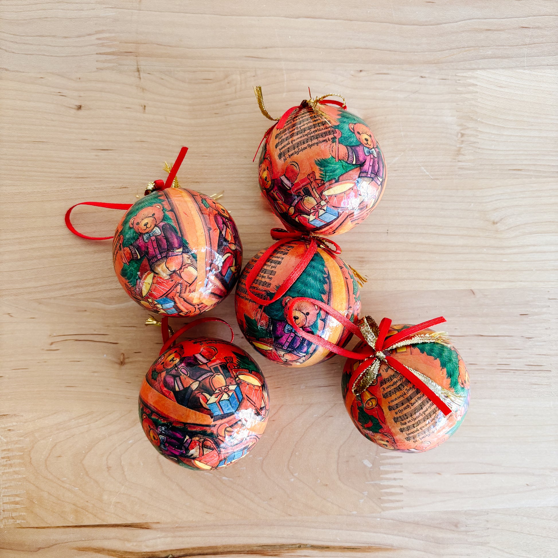 Ornament - Musical Teddy Bears with Bows (set of 5)