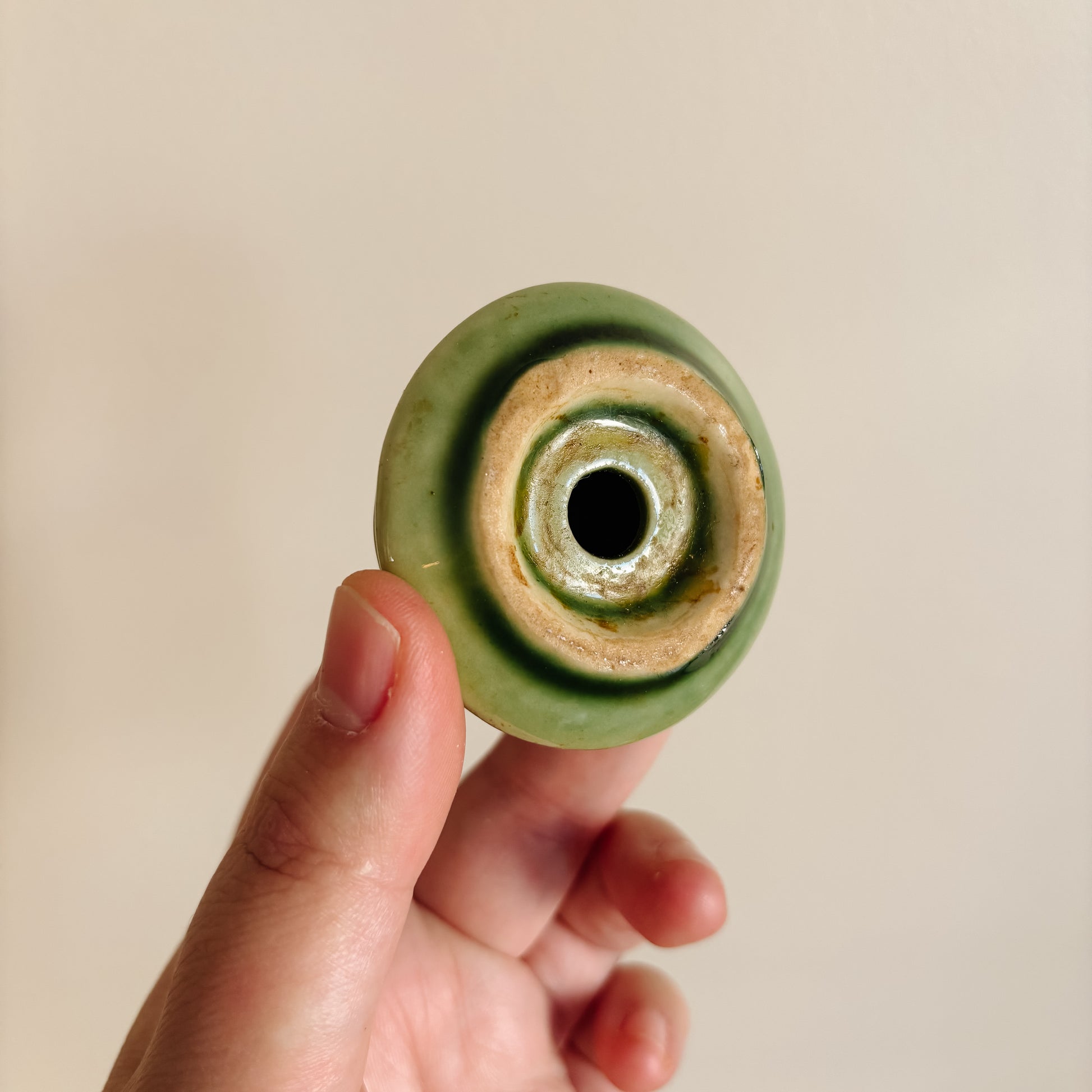 Pair of cool midcentury Christmas tree salt and pepper shakers with a unique round look. The stoppers are inside the shakers, recommend using these for display only.
