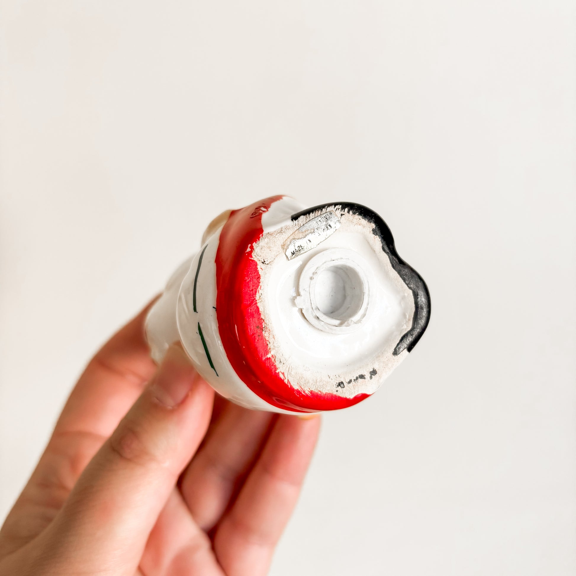 Cute Santa & Mrs. Claus couple that kiss when placed in the right position! In good overall condition, stoppers present, made in Taiwan.