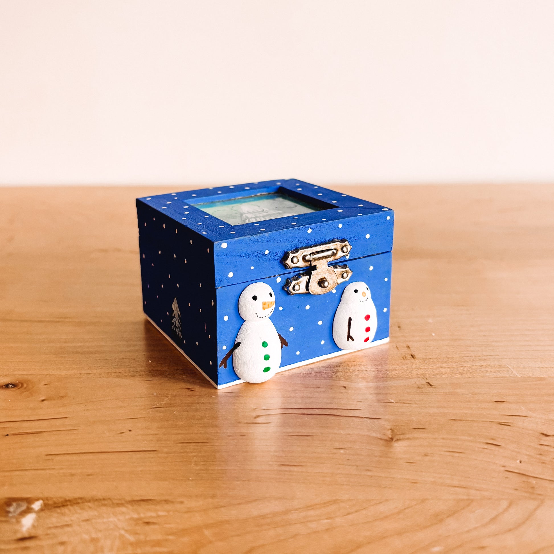 Small Folksy Wooden Box with Winter Design