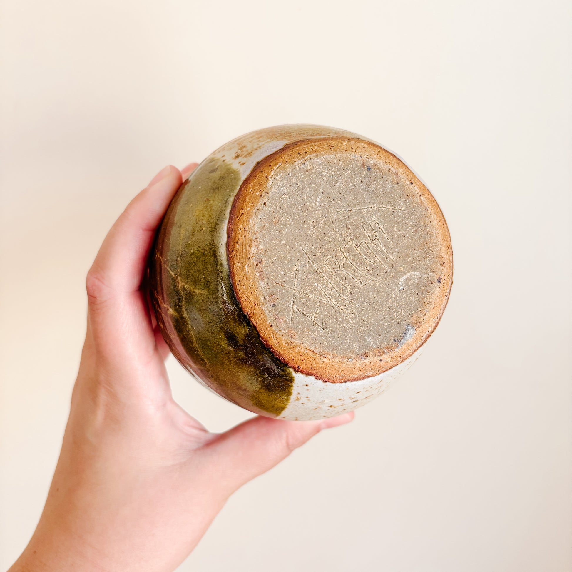 Two-Tone Cream and Olive Green Studio Pottery Vase