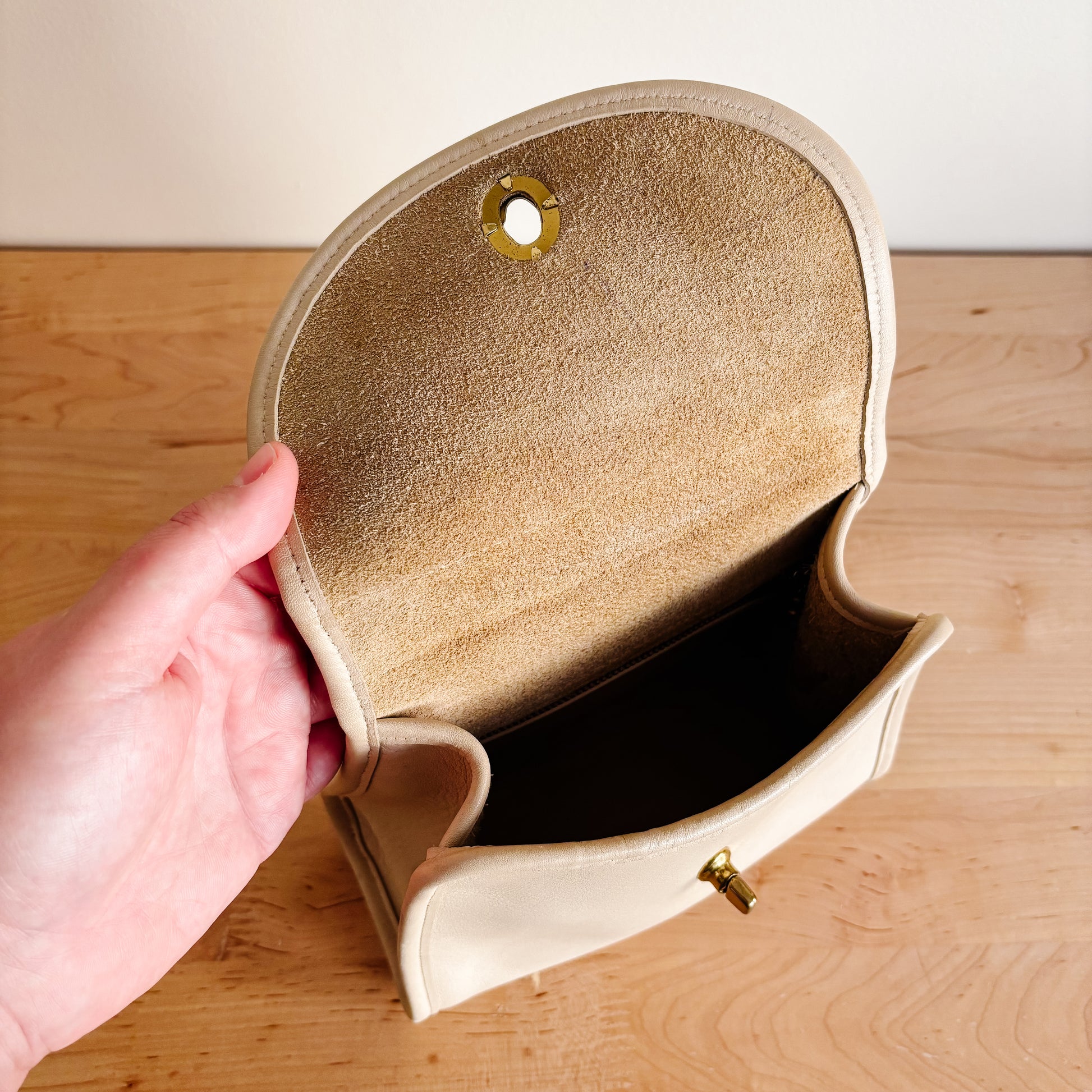 This beautiful vintage Coach Regina handbag is from the 1990s! Made of cowhide leather in the "Bone" colourway, which is a classic off-white colour. A perfect little bag for the holidays.