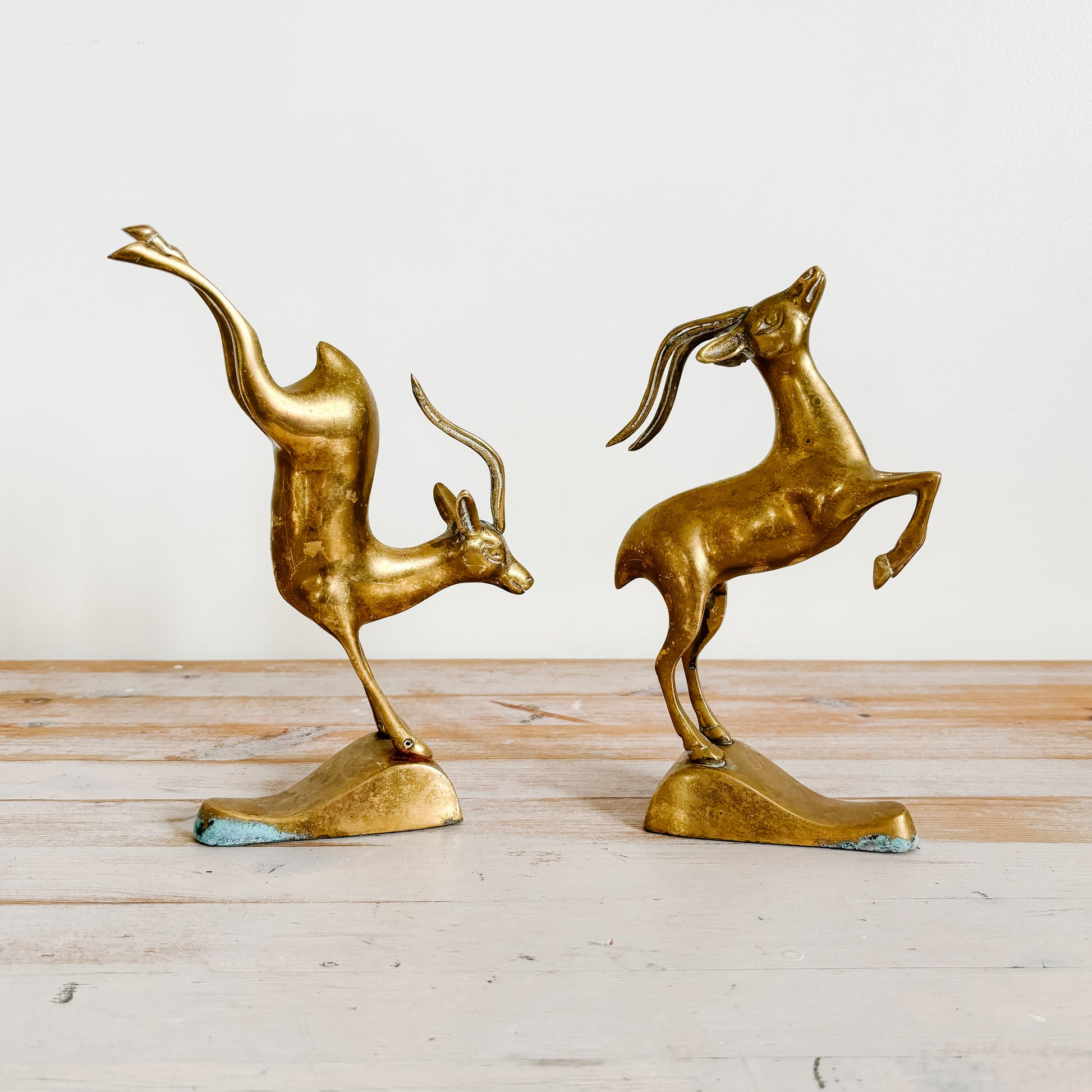 Vintage Leaping Brass Antelopes (set of 2)