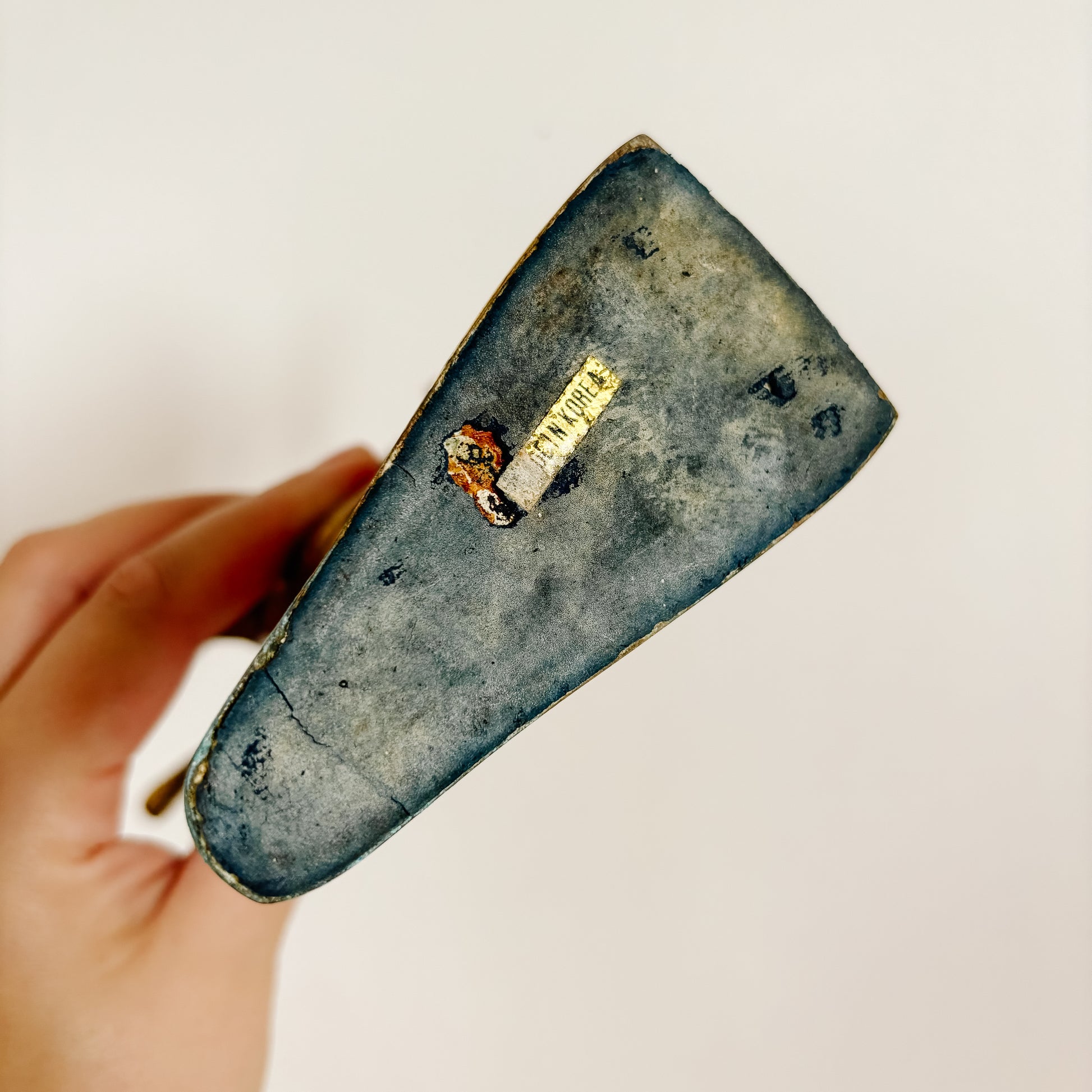 This pair of vintage brass antelopes would make fun holiday decor (they sort of look like prancing reindeer to me!). Heavy tarnish on the bases. One of the antelopes is missing a horn. See all photos for details.