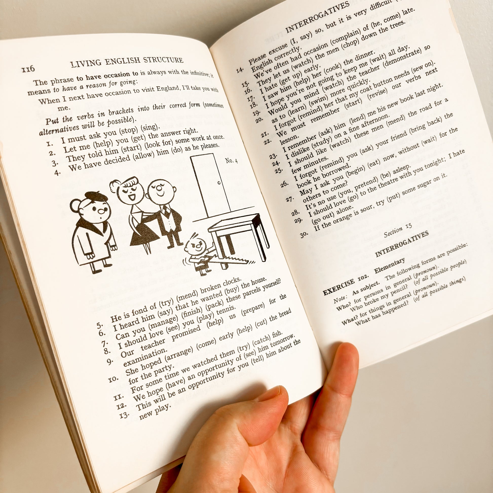 Paperback copy of Living English Structure for Schools by W. Stannard Allen, published in 1964. In good overall condition with some wear on the spine.