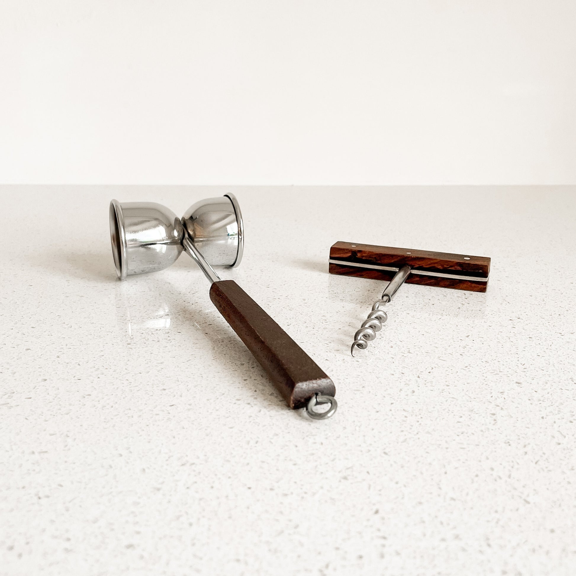 Wood-Handled Stainless Steel Bar Tools (set of 2)
