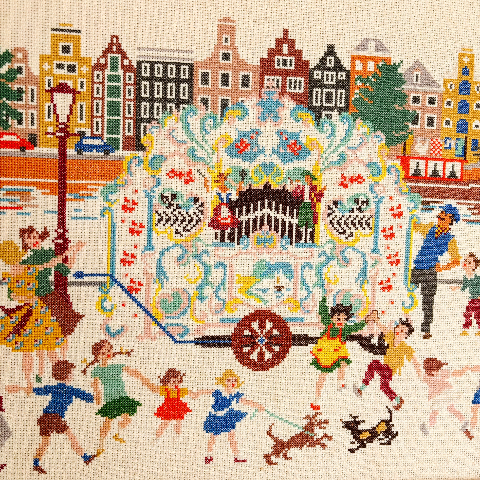 XL Cross Stitch Art - 1960s Amsterdam Street Organ Holland Netherlands