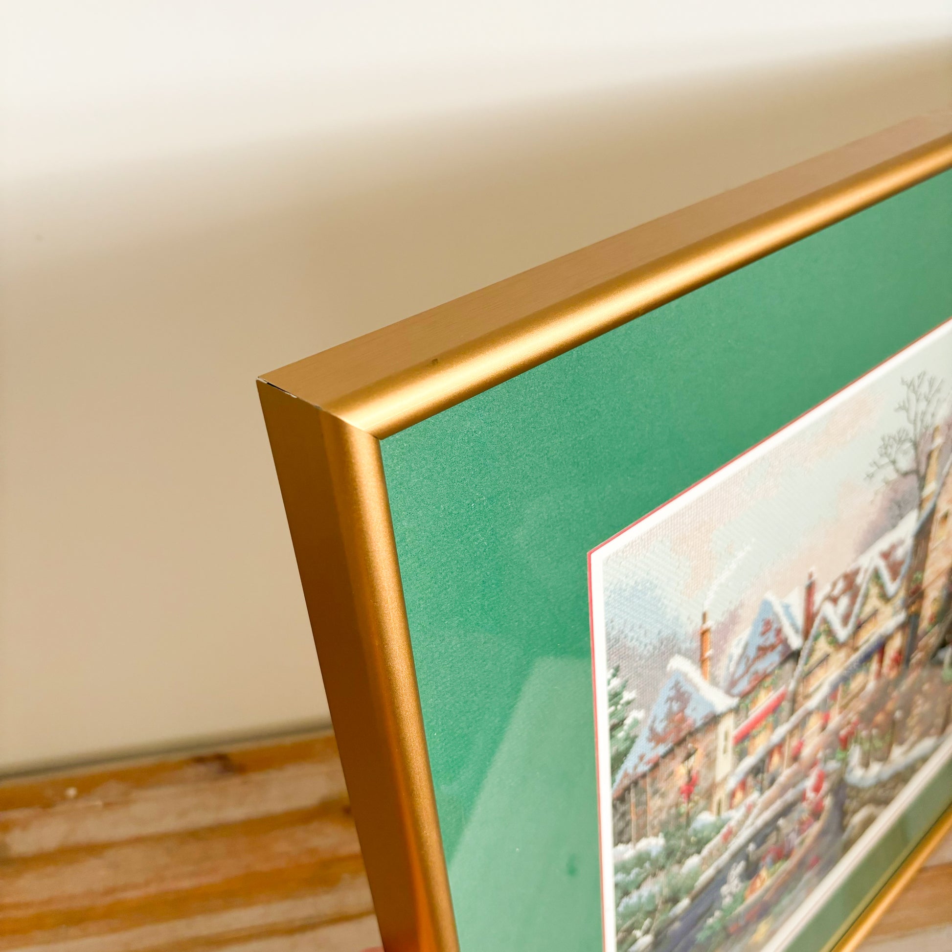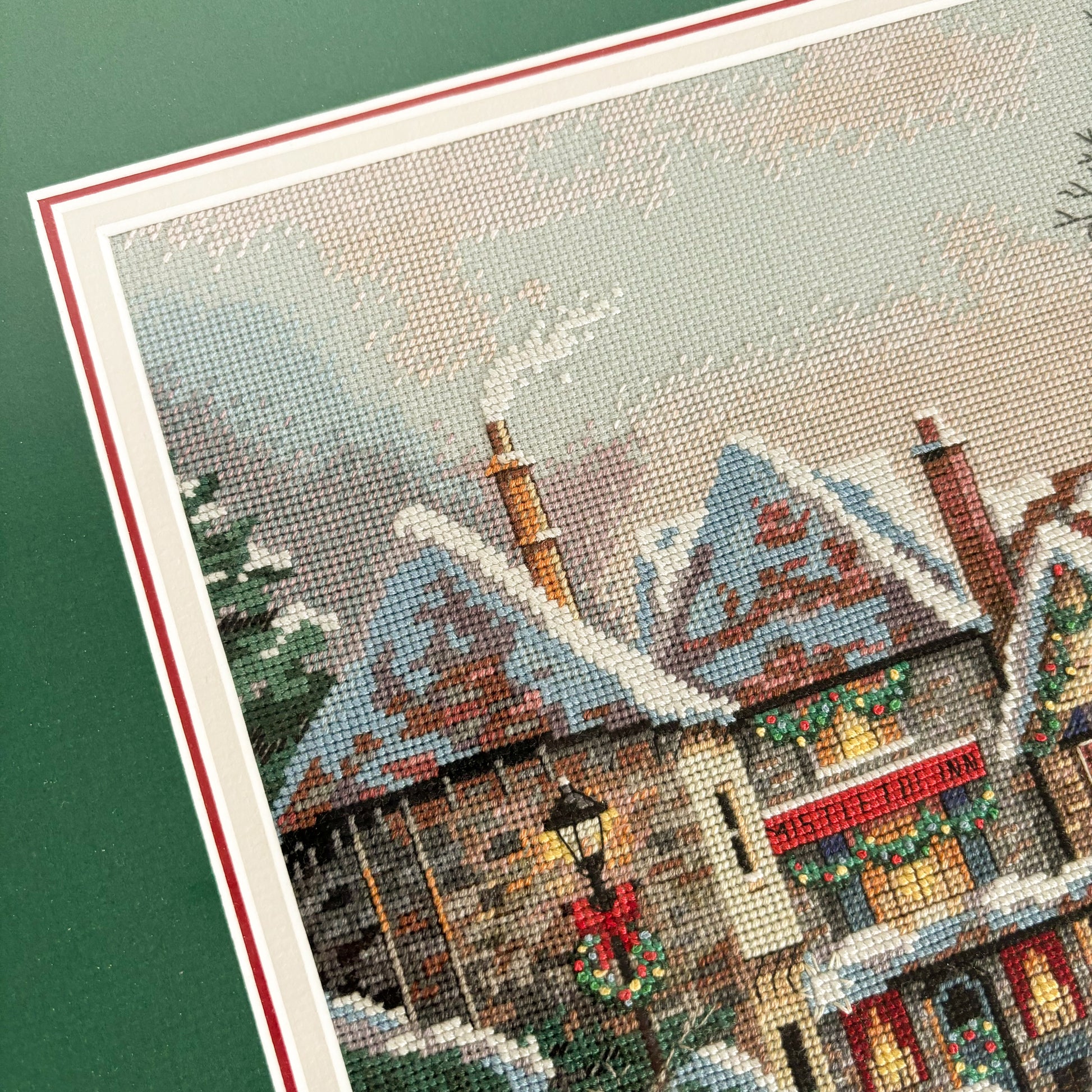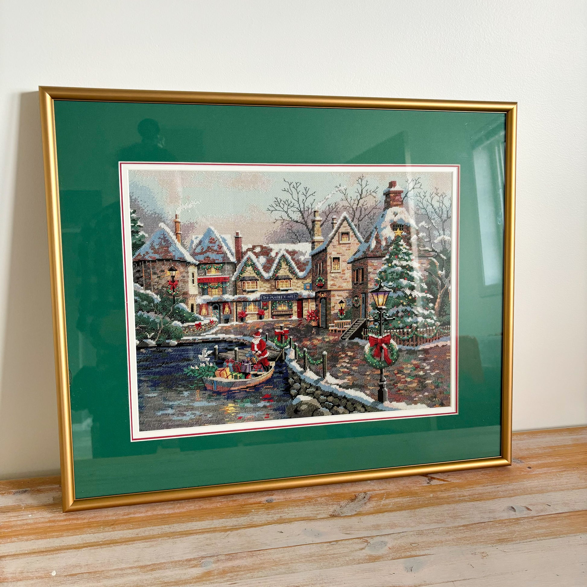 XL Framed "Christmas Cove" Scene Needlepoint Cross Stitch Embroidery